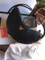 Crafted from smooth leather with a curved silhouette, it features a detachable strap for shoulder or crossbody wear. A signature logo adds a subtle touch of luxury. Perfect for day-to-night versatility.