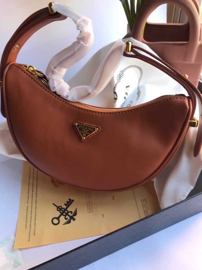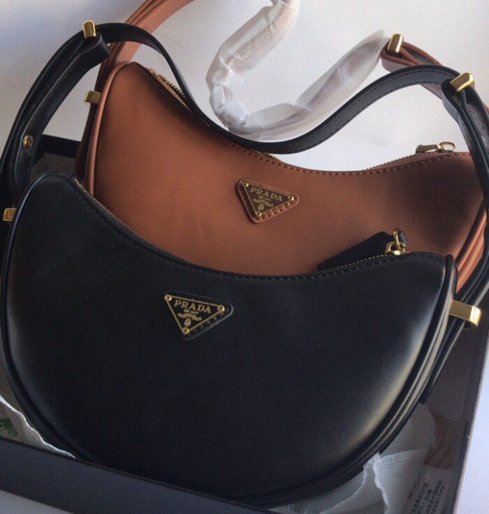Crafted from smooth leather with a curved silhouette, it features a detachable strap for shoulder or crossbody wear. A signature logo adds a subtle touch of luxury. Perfect for day-to-night versatility.