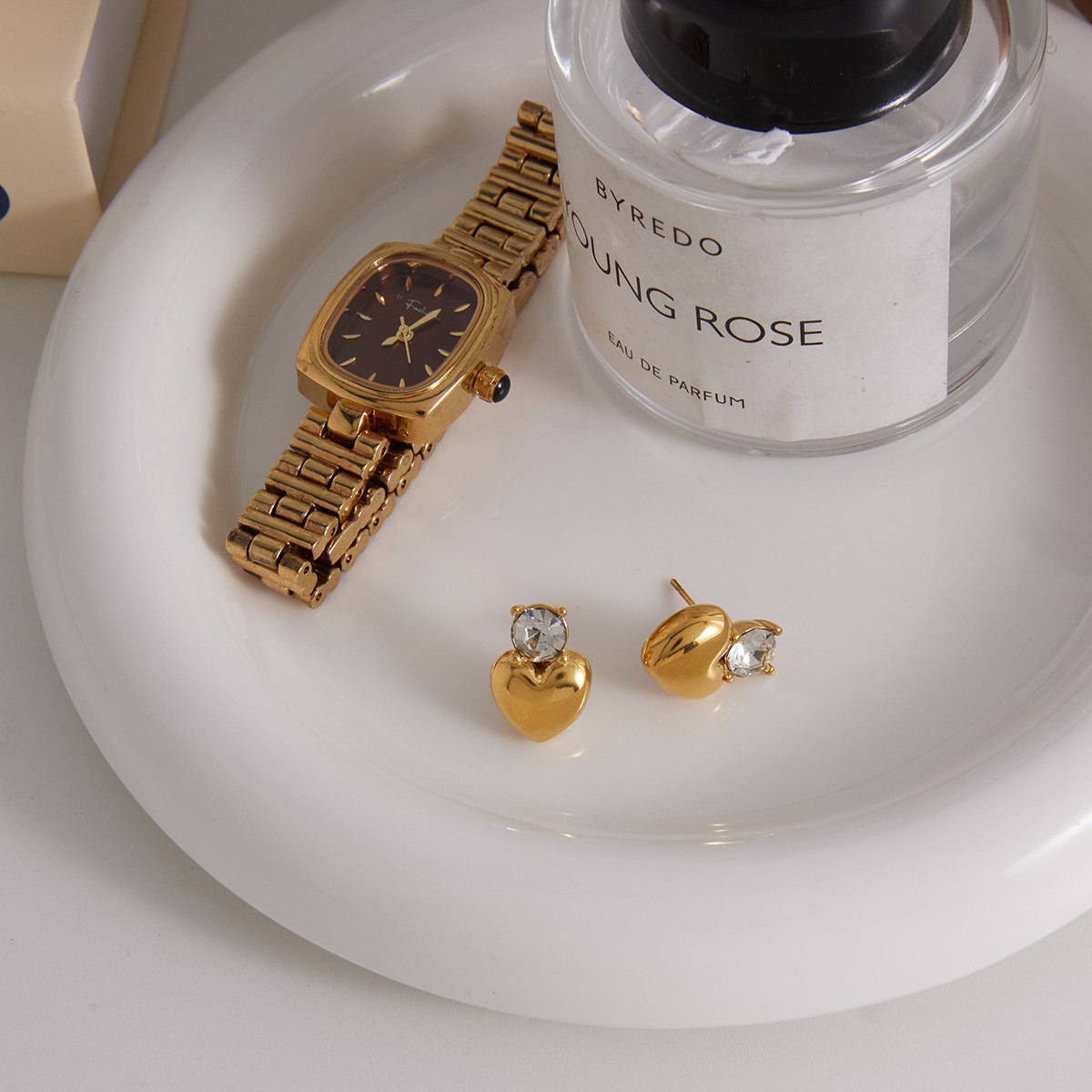 The Lovebeam Heart Studs are an elegant blend of sophistication and romance. Featuring a smooth heart-shaped design in 18K gold plating, these earrings are adorned with a zircon stone for a radiant touch.