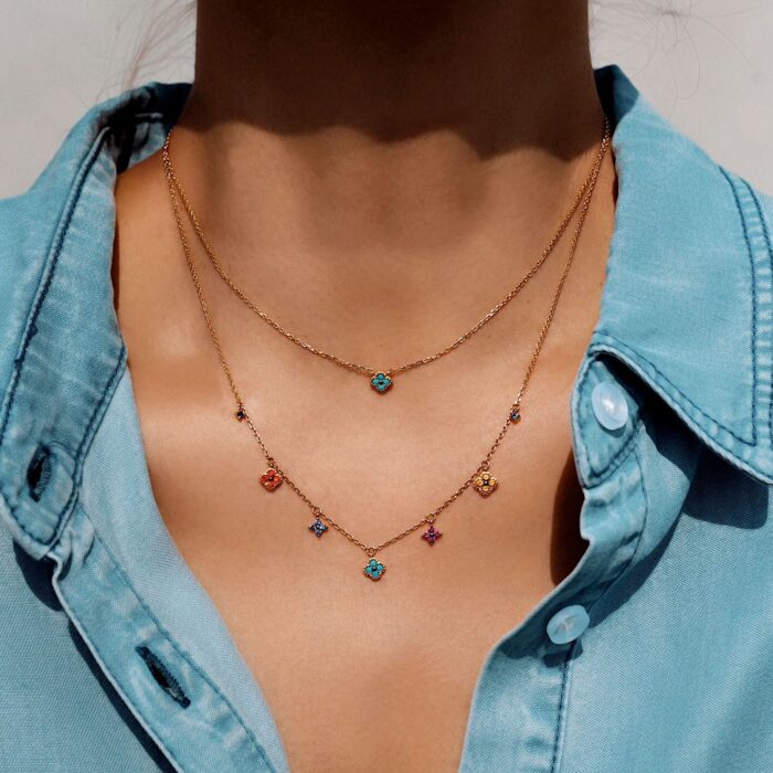 A refined piece crafted from sterling silver and set with 5A-grade zirconia stones in soft blue and violet tones. Lightweight, adjustable, and hypoallergenic — made for effortless, everyday elegance.