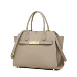 Inspired by timeless icons of fashion, The Lucienne is a structured handbag crafted from premium genuine leather, combining classic elegance with everyday functionality. Featuring a refined grain texture and a sculpted silhouette, this piece stands out for its polished hardware, signature front strap, and top-handle design.